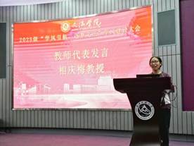 教师代表相庆梅教授结合学院学科专业特色,以“深耕专业、锤炼本领、全面成长”为主题分享学术感悟与育人心得。她充分肯定了2025级新生入学以来展现的求知热情与踏实作风,鼓励同学们保持对学术真理的敬畏与追求,面对专业学习中的难点堵点,要以“钉钉子”精神攻坚克难,在思辨中提升专业素养,知行合一,全面发展。